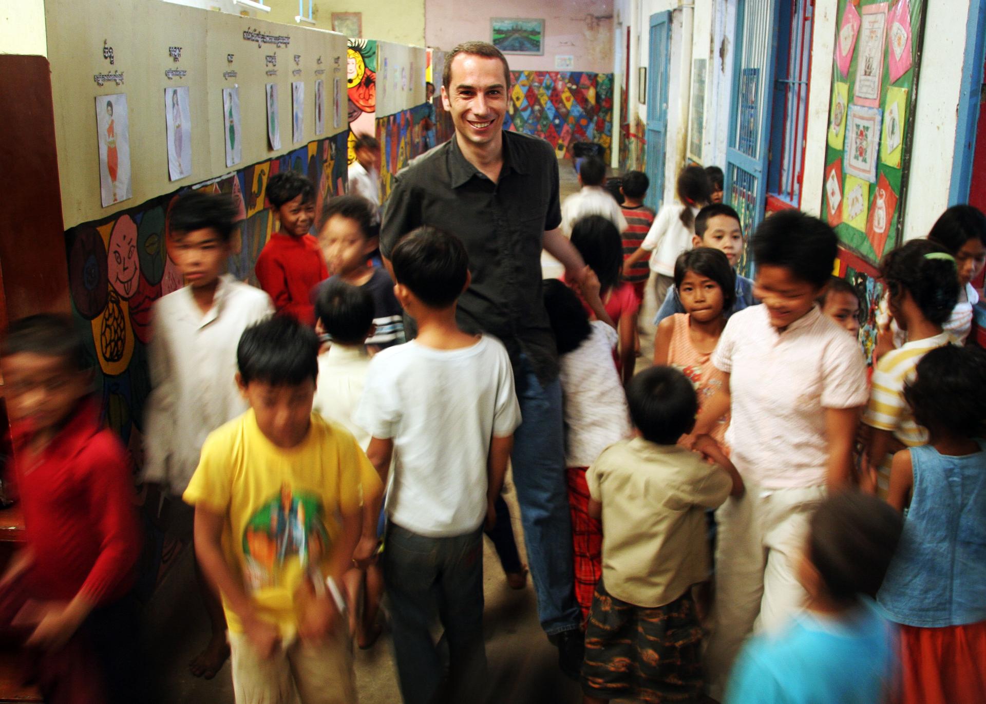 On ne peut pas dire que Sébastien ait eu le coup de foudre pour le Cambodge, car à l'époque "le pays était dans un triste état : il n'y avait pas d'eau ni d'électricité, les routes étaient défoncées, les provinces inaccessibles, les coups de feu faisaient partie du quotidien à Phnom Penh ". Cependant il a un déclic qui le fait rester et qui lui donne envie de s'investir pour ce pays où la justice sociale n'est pas de loi. Sébastien raconte : "Un soir en rentrant d'un restaurant, près du marché central, je vois des dizaines d'enfants dormir sur des cartons dans la rue alors qu'une grosse Mercedes passe dans cette même rue ". Il est ni chrétien, ni boy-scout mais il éprouve un malaise dans ce pays où certains deviennent riches aux dépens des autres. Des millions de dollars sont dépensés, mais personne ne s'occupe des enfants des rues et de leur éducation?