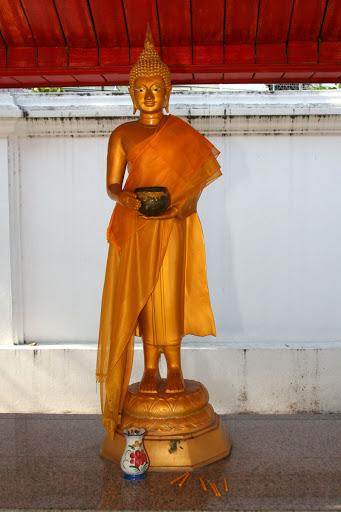 Cette position représente le détachement et la pauvreté, condition du moine qui va recevoir sa nourriture de la part des fidèles. Ils doivent être satisfaits de tout ce qui leur est donné car la nourriture est comme un médicament qui permet au corps et à l’esprit de se maintenir. Les moines mangent deux fois par jour et seulement le matin. Ils peuvent pas travailler et dépendent ainsi de la population, mais aident les bouddhistes ordinaires en les conseillant et en priant pour eux.