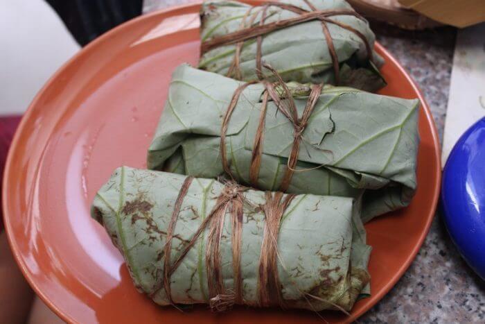 De nos jours, le num ânsâm est solidement ficelé à l’aide d’un fil de nylon. Mais avant que l’utilisation de ce fil synthétique ne se généralise, on utilisait une ficelle grossière confectionnée à partir de l’écorce d’un arbuste appelé « preal » (ព្រាល, prononcer [priel]). Notre cuisinière, originaire de la campagne, met un point d’honneur à rejeter la modernité dès qu’elle le peut, et s’est donc mise en devoir de parcourir les marchés de Phnom Penh à la recherche de cette ficelle de preal.