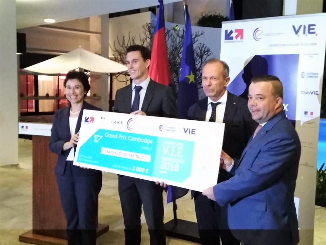 Le grand prix du volontaire international en entreprise (VIE) a été organisé mardi 27 novembre pour la première fois au Cambodge. Lors d’une réception à l’ambassade de France, Charly Guillo (Lactalis) a reçu le grand prix, et Cécile Ga (laboratoires Servier) a obtenu le prix spécial du jury.