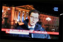 En direct du Palais Royal, un vrai journaliste commente le rassemblement des indépendantises ? une poignée de figurants rapidement rejoints par de vrais nationalistes ? et la chaîne diffuse des reportages sur les trains bloqués à la frontière, laissant entendre que des milliers de Belges tentent de quitter le pays.