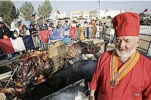 Christian Falco, 63 ans, originaire de Perpignan, dans le sud-ouest de la France est un rôtisseur bien connu dans l'Hexagone, notamment chez les producteurs de veau d'Aveyron et du Ségala qui font régulièrement appel à ses services pour ravir les palais des amateurs de bonne viande aveyronnaise. Cette fois, Falco s'est attaqué à un morceau de choix, un dromadaire de 550 kg, qu'il a cuit à la broche durant 15 heures, pour un restaurateur de Safi, station balnéaire du sud du Maroc (photo AFP). Ce plus grand méchoui du monde n'est pas le premier défi de Safi. En juillet 1999, la ville avait préparé le plus grand tajine du monde dans un plat qui faisait 6,30 m de diamètre et 4,5 m de hauteur selon l'AFP. Deux cents femmes avaient participé à la préparation de boulettes de sardines, une spécialité régionale. Pour le dromadaire, Il aura fallu trois tonnes de bois et 15 litres d'huile pour réussir la cuisson. Egorgé jeudi, embroché vendredi soir, mis en cuisson samedi à l'aube, le dromadaire qui pesait vif 550 kg a donné un méchoui de 380 kg, le tout sous le regard attentif d'un notaire invité à homologuer l'opération dans le Guinness des records. Le rôtisseur Falco a déjà été cité six fois dans le fameux livre. Pour l'organisateur marocain, la fête a coûté 110.000 dirhams (10.000 euros). "J'effectuais un pèlerinage à la Mecque, quand un ami commun m'a demandé si j'étais prêt à organiser un tel événement. J'ai tout de suite accepté, car notre ville a besoin de promotion", assure Mehdi Slawi, 27 ans. Cinq cents convives ayant acquitté 150 dirhams (11 euros) sont venus déguster le dromadaire. "C'est un événement merveilleux, car après la sardine et maintenant le dromadaire, Safi est devenue la ville des records", a confié à l'AFP, Zahia Hosni, du Centre régional du Tourisme de la ville. (www.lepetitjournal.com - Casablanca) mercredi 21 novembre 2007