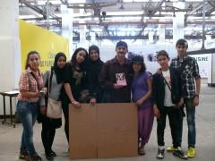 Au commencement, il faut intégrer un groupe qui peut aller de 5 à 20 personnes. La classe d'initiation musicale et théâtrale de 4ème du collège Sidi Bernoussi, accompagnée par son professeur de langues Monsieur Khalid, s'est prêtée à l'exercice. Guidé par une médiatrice, le groupe doit tout d'abord définir le genre du film. S'agira-t-il d'un policier, d'un drame? Les idées fusent. Finalement, ils choisissent une comédie et vu la joie sur leur visage, ça leur va bien ! Ils se concertent ensuite afin de définir la trame générale du film, le scénario. Leur professeur, un passionné de théâtre, estime que c'est une façon ludique de leur faire assimiler le vocabulaire propre au domaine cinématographique. Une des élèves se propose pour filmer. Plus tard, la médiatrice lui remettra une petite caméra. Pas de montage, une brève répétition pour chacun avant d'enregistrer et... Action ! C'est affublés de déguisements superposés que les élèves et leur professeur, qui se prête volontiers au jeu, débutent le tournage.