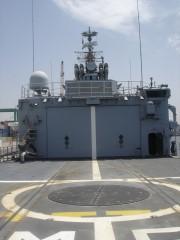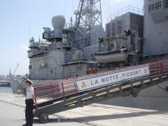 Ceci dit, l'escale d'un navire de combat n'est jamais un geste anodin. Il y a toujours une autorisation diplomatique à demander. Lorsque nous avons conçu ce programme, nous avons lancé une demande qui est passée par les affaires étrangères françaises, transmise ensuite au service des affaires étrangères marocain qui donne son accord officiellement, généralement sous la forme d'une invitation à venir en escale. Cette procédure se passe de façon naturelle et simple avec le Maroc car nous avons régulièrement des bateaux qui viennent ici. (ci-contre: La frégate La Motte Picquet amarrée au port de Casablanca)