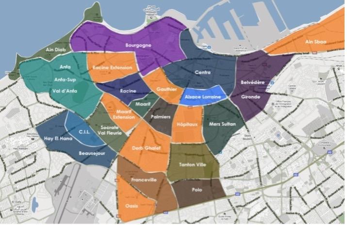 - A l’Est, il y a les quartiers Gironde, Hay Mohammadi, Belvédère, Aïn Sebaâ ;