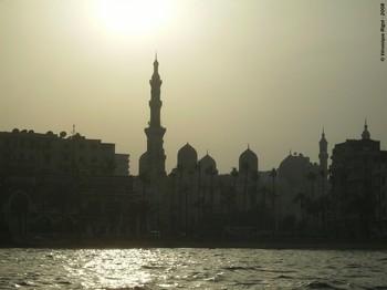 Le temps de se retourner, et découper la silhouette de la grande mosquée dans le ciel brumeux.
