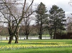 Grand étang de près de 2,5 ha à l'entrée du Mediapark, des cygnes y ont élu domicile.