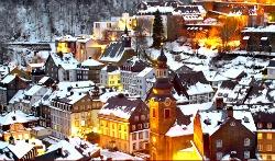 A quelques kilomètres de la frontière belge, Monschau est une petite ville de l'Eifel qui, à la période de l'Avent, vaut le détour ! A la tombée de la nuit, la ville devient un lieu particulièrement magique. Les magasins, les restaurants, les galeries et les antiquaires vous invitent également à apprécier l'ambiance de Noël.