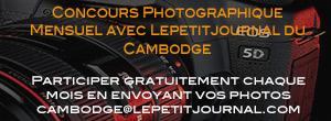 lepetitjournal.com/cambodge va retenir une sélection de vos plus belles prises de vues photographiques sur le thème du Cambodge. Puis nous proposerons un vote auprès de nos lecteurs afin d'élire la plus belle photographie du mois.
