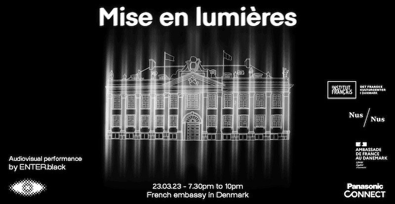 Ce jeudi 23 mars, de 19h30 à 22h, l’Institut français du Danemark organise une performance du collectif d'artistes français ENTER.Black, intitulée "Mise en lumières". A cette occasion, les artistes illumineront la façade du Palais Thott, siège de l'ambassade, et ces projections évolutives seront aussi accompagnées de musique.