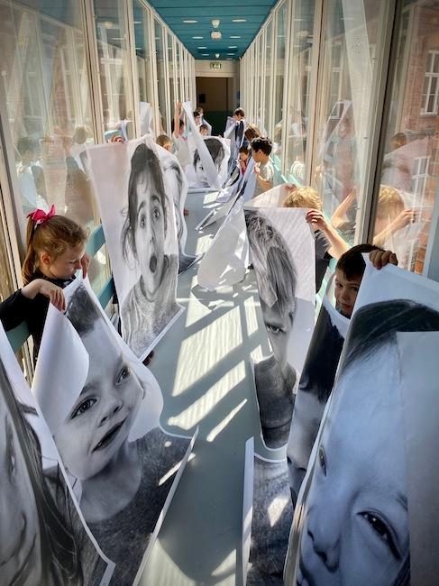 Avec l'aide de leurs enseignants, les enfants (classes de CE1, collégiens et lycéens) afficheront à la place leur portrait au sein du Lycée français. Un petit film et des photos de cette installation seront partagés sur la page Facebook et le site internet de Inside Out Project.