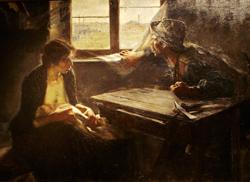 Ernesto de la Cárcova (1866-1927) expose pour la première fois ce poignant tableau, Sin pan y sin trabajo, à El Ateneo, en 1894, une organisation qui, à la fin du 19e siècle, s'efforce de diffuser la production artistique et littéraire argentine. Débuté à Paris et achevé à Buenos Aires, Sin pan y sin trabajo est imprégné du réalisme populaire qui marque alors l'art italien. De la Cárcova a en effet étudié plusieurs années en Italie. Dans ce tableau, il offre, en accord avec ses convictions socialistes, une saisissante vision de la misère ouvrière, "doublement carencée, en pain et en travail : on dirait la reprise du slogan de la Révolution française", selon Nora Iniesta. Premier directeur de la Academia Nacional, Ernesto de la Cárcova est aussi le fondateur de la Escuela Superior de Bellas Artes. L'?uvre a été acquise en 1906 par Eduardo Schiaffino, directeur, à l'époque, du Museo de Bellas Artes.