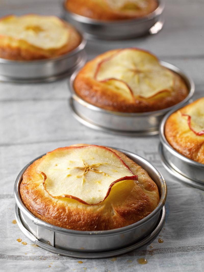 - Préchauffer le four à 200°C. Badigeonner à nouveau la pâte de dorure. Égoutter les rondelles de pomme. Déposer une rondelle sur chaque boule de pâte et piquer 3 cure-dents afin de les faire tenir. Faire cuire au four pendant 10 à 12 minutes, puis laisser refroidir.