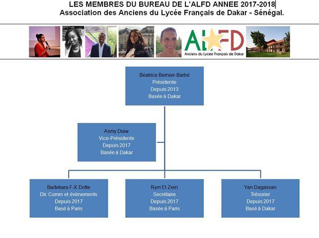 Le siège social est domicilié au lycée Mermoz mais, faute de place dans les locaux de l'établissement, nous n'avons pas de bureau, à proprement parler. Nous sommes en "mode mobile". Mais cette spécificité n'est pas problématique vu que nos adhérents sont répartis dans le Monde entier et qu'en ce qui concerne nos ALFD dakarois, c'est souvent nous qui partons à leur rencontre, afin de réaliser nos fameux "posts" via la page Facebook ALFD et le groupe Communauté ALFD : "Nos anciens élèves ont du talent!".