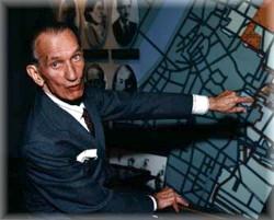 Devant une carte du Ghetto de Varsovie dans le musée de l'holocauste à Washington, Jan Karski récapitule ses missions secrètes (Photo E. Thomas Wood, 1994)