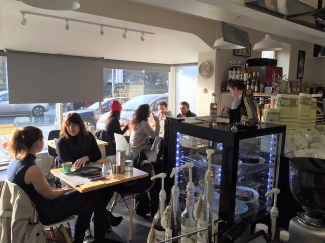 À peine entré dans cette dernière, on y découvre un cadre chaleureux et accueillant, la grande baie vitrée permettant de laisser passer le soleil qui, en cette journée d'hiver, est étonnement bien présent. La terrasse, située devant cette vitre, est même fréquentée : l'ensoleillement est maximum.