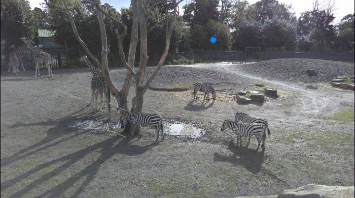 Le parc bâti dans la longueur fait aussi la part belle à la savane africaine puisque la moitié du zoo lui est consacrée, articulée autour d'un deuxième grand étang. Ici les animaux ont plus d'espace que dans la première partie et il est beaucoup plus facile de les voir. Girafes, zèbres, autruches, chimpanzés? c'est tout Le Roi Lion qui s'est donné rendez-vous au Dublin Zoo. On a quand même un peu de peine pour les rhinocéros qui semblent tous marqués, un peu ensanglantés, par des combats entre eux. La visite du coin « Afrique » se termine par les okapis avant de prendre un café bien mérité et de revenir dans la première partie du parc où il reste une bonne moitié des animaux à voir. Et pas des moindres puisque les pingouins et les éléphants, dans leur immense enclos sont aussi là. Même si le zoo a mis en place des caméras pour les observer sur son site internet, rien de mieux que de se déplacer pour les voir.