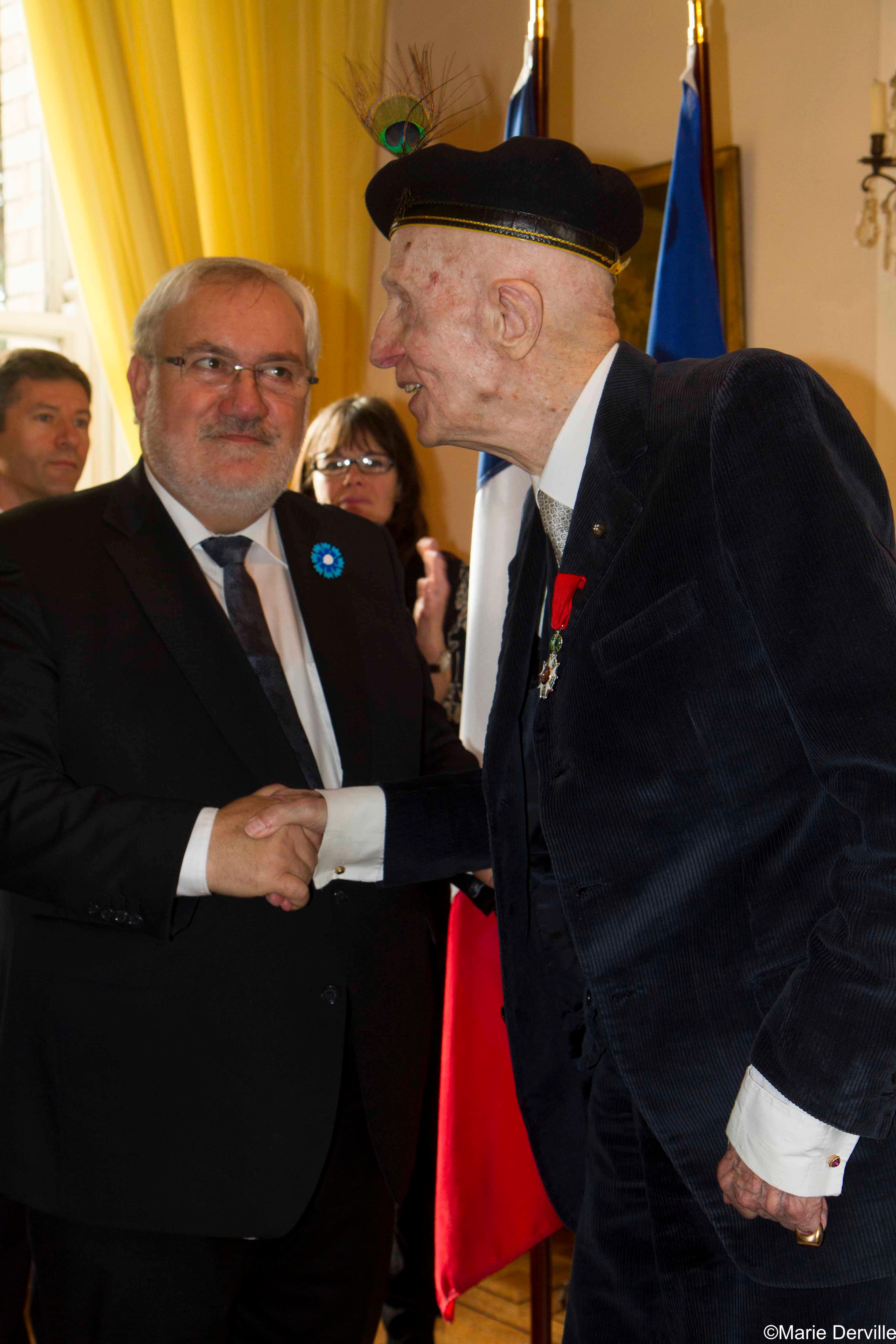 Jean-Marc Todeschini, secrétaire d'Etat chargé des anciens combattants et de la mémoire auprès du ministre de la Défense, a remis lundi 9 novembre la Légion d'honneur à John Leslie, l'un des derniers combattants irlandais enrôlé dans le deuxième bataillon des Irish Guards en Août 1937 et qui a fait partie du corps expéditionnaire britannique qui a débarqué en France en mai 1940.