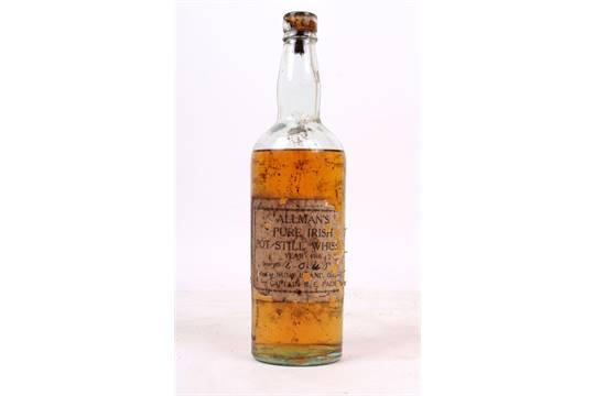 C'est toutefois l'une des plus vieilles bouteilles de « pure pot still whiskey » fermées et elle date de 1916, date forcément particulière en Irlande et en cette année 2016. Le « pure pot still whiskey » est une méthode irlandaise de fabrication de whiskey. A la différence des single malt écossais notamment, écrits d'ailleurs "whiskys", ces whiskeys sont notamment élaborés à la base d'orge maltée et d'orge non maltée. Ce qui fait également sa singularité, c'est sa provenance. Elle a effectivement été produite par la légendaire Bandon Distillery dans le comté de Cork et mise en bouteille à Galway dans le quartier de l'île des Nones. Cette distillerie et la famille Allman qui l'a créée, ont effectivement une histoire particulière. La légende raconte qu'en 1820, un prêtre catholique poursuivi par des protestants a trouvé refuge chez les Allman durant trois jours. Pour les remercier, il aurait prié pour les enfants Allman pour qu'ils puissent « créer des richesses à partir de l'eau ». En 1826, James C. Allman créa la distillerie de whiskey, « the water of life », et ce fut un réel succès jusqu'à devenir la deuxième plus grande malterie d'Irlande juste derrière celle de la fameuse Brasserie Saint James de Guinness à Dublin. Grandement tournée vers les Etats-Unis, la prohibition américaine et les difficultés économiques des années 1920 ont finalement eu raison de la distillerie, mais sa légende reste toujours intacte.
