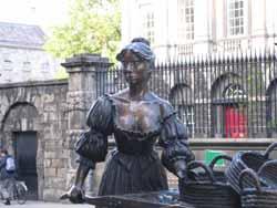 Au pied de Grafton Street, plébiscitée par les touristes, l'effigie de Molly Malone, la marchande de poissons au décolletégénéreux et figure populaire des chansons àboire irlandaises va du nom de The Tart with the Cart, The Dolly with the Trolley, ou encore The Dish with the Fish.