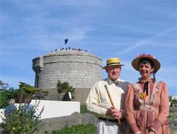 Des passionnés de Joyce en costumes edouardiens devant la tour Martello de Sandycove. (Photo: LPJ)