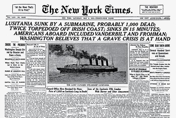 Mais à l'époque, cette attaque apparemment sans justification sur des civils américains contribua à renverser l'opinion publique américaine sur la nécessité d'une entrée en guerre. Ce naufrage reste donc important dans l'histoire de la guerre car il participe pour beaucoup à l'escalade des hostilités entre les Etats-Unis et l'Allemagne, jusqu'à l'entrée en guerre des Etats-Unis le 6 avril 1917.