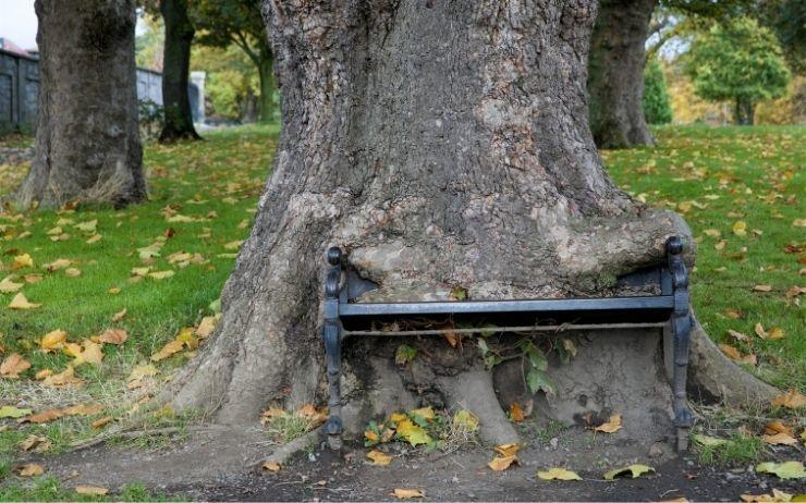 Au fil des années, l'arbre dublinois a grandi, avalant les parties de la structure qui se dressent sur son chemin. Son écorce noueuse déborde maintenant sur l'arrière du banc, donnant l'impression que le siège est aspiré dans le tronc de l'arbre.