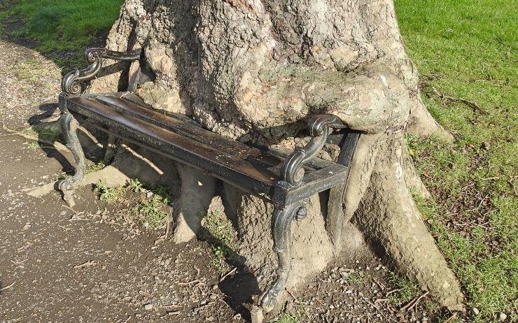 Il y a un arbre à Dublin qui dévore un banc en fonte ! Connu sous le nom de "The Hungry Tree" (ou l'arbre affamé), ce platane dit 'de Londres' (Platanus x hispanica) a plus de 80 ans et se trouve dans l'enceinte de l'Honorable Society of King's Inns, la plus ancienne école de droit d'Irlande, fondée en 1541 sous le règne du roi Henri VIII.