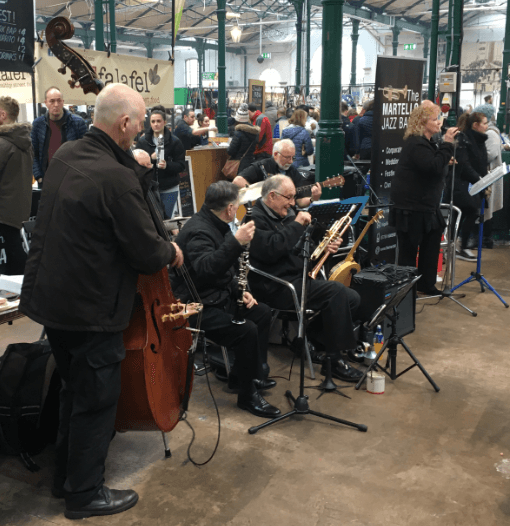 Mais le vrai grand avantage de ce marché « à l’espagnole », c’est qu’il est conçu pour tout type de faim. Vous pourrez aussi bien traverser les allées en dégustant du fromage français, du jambon basque ou des cupcakes, que vous installer avec un gros repas sur la place centrale en y écoutant le groupe musical du jour y réciter un répertoire jazz, rock ou country irlandaise.