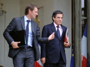 Le Premier ministre François Fillon (D) et le ministre du Budget François Baroin à la sortie du Conseil des Ministres à L'Elysée, le 8 septembre 2010 (AFP)