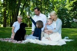 A gauche, la famille princière au complet et Milly Kakao - à droite, le Prince Sverre Magnus et le jeune chiot