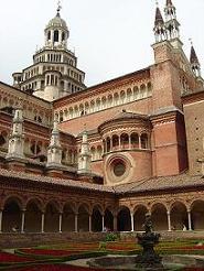 Renaissance Lombarde Composée de marbres de différentes régions italiennes, la façade a été achevée en 1470 sous la direction du Giovanni Antonio Amadeo, sculpteur de la Renaissance toscane en Lombardie, élève de Solari et également architecte de la chapelle Colleoni à Bergame. Comme le Duomo de Milan, le plan de l'église forme une croix latine. Le petit cloître offre une belle vue sur l'église. Le grand cloître possède une centaine d'arcades ornées de médaillons de terre cuite sculptés, derrière lesquelles se trouvent 24 cellules où vivaient les moines. A quelques kilomètres du monastère, la ville de Pavie offre une balade sympathique dans les ruelles pavées du centre historique, à la découverte de cours intérieures cachées et de fresques murales. On y trouve de nombreuses basiliques et églises et l'une des plus anciennes universités italiennes. Corentine GASQUET. (www.lepetitjournal.com - Milan) jeudi 26 février 2009