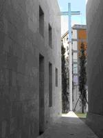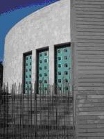 | Giuseppe Uncini a délimité le site du Santo Volto di Gésù par une grille de joncs de fers entremélés | Le baptistère est l'oeuvre d'un travail sur différentes échelles. Il n'est pas vu comme une fontaine mais plutôt comme un fleuve dans lequel plonge l'eau de vie. | Le site du Santo Volto di Gesù a été créé pour que toutes les lignes directrices des bâtiments convergent vers la croix, oeuvre de Eliseo Mattiacci. C'est le symbole du chemin du Christ vers les hommes. |