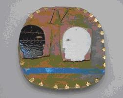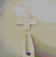 | Le chef de chantier Breccia a imprimé sa main sous la croix. Lors de la consécration de l'église, c'est à ces emplacements que le cardinale Ruini a déposé le Saint chrême. | Le chemin de croix a été réalisé par Mimmo Paladino en terracotta et céramique. Au lieu de 14 stations, l'artiste en a exceptionnellement créé 15, la dernière étant celle de la résurrection. |