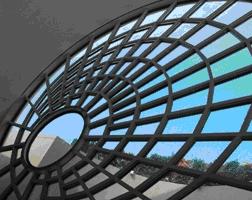 | Piero Sartogo et Nathalie Grenon ne voulaient pas d'une rosace centrale. Ils souhaitaient représenter symboliquement le regard de la terre vers le ciel, vers le Christ. La verrière est constituée comme une coquille d'escargot et peut ainsi mener vers l'infini. L'oeuvre n'est que partiellement terminée puisqu'un médaillon de fonte d'un diamètre de trois mètres devra être placé dans la partie centrale. Janis Kounellis est l'artiste en charge de dessiner ce médaillon qui représentera le visage d"un Christ joyeux. | Piero Sartogo et Nathalie Grenon ont voulu distinguer le lieu de culte (en blanc) du lieu de vie dédié aux rencontres paroissiales. Les bancs spécialement dessinés pour le lieux ont été pensés pour créer un sentiment de présence même quand le lieu est vide. |