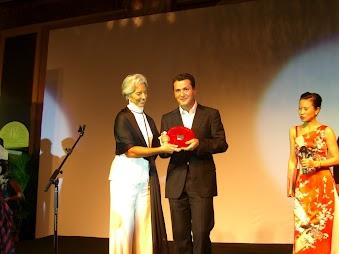 Christine Lagarde, alors ministre de l'économie, remet le prix "PME-Chine" à Sébastien Breteau en 2007