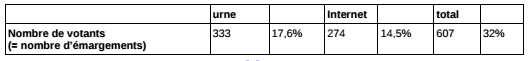 Publication de la participation sur le site de l'ambassade [4] en nombre de votants et en pourcentage des inscrits.