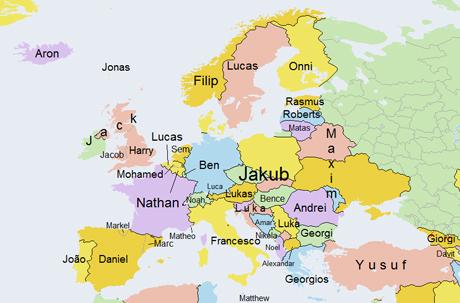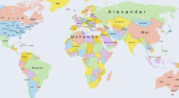 Le site Slate publie une carte du monde des prénoms masculins les plus répandus. Petit bémol, la carte ne reflète pas la situation dans la totalité des pays.