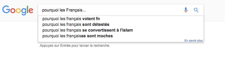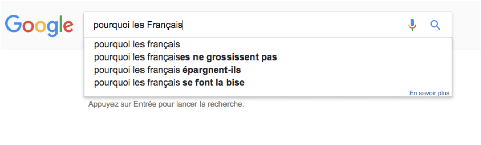 Si on tape « Pourquoi les Français » au Portugal, Google va immédiatement suggérer la fin de la phrase « sont si mal éduqués » ? Les Polonais s'interrogent de leur côté sur notre « minceur ». Et les Hongrois quant à eux s'inquiètent que nous ne prenions « pas de bain » !