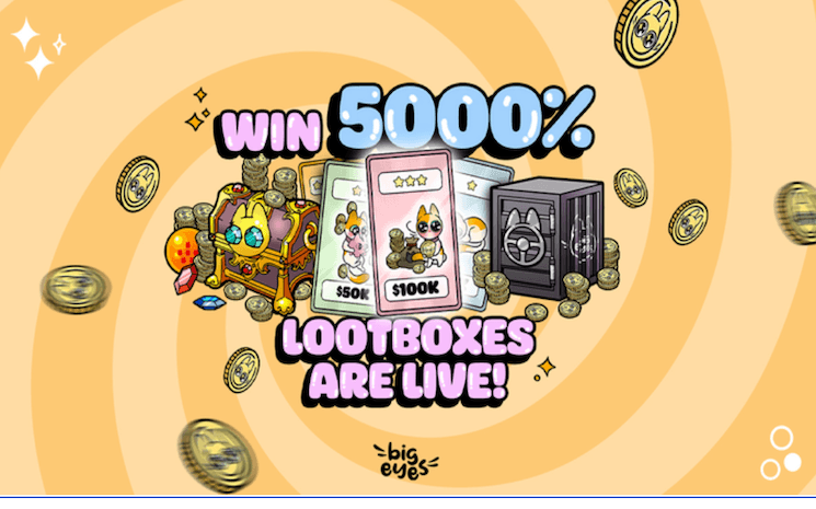 Autre crypto adorable, Big Eyes Coin place lui aussi ses utilisateurs au premier plan, en mettant 90% de tous ses tokens à la disposition de la communauté. De plus, Big Eyes s'engage à sauver les océans et réserve 5 % de ses tokens aux œuvres caritatives dédiées à la protection du milieu marin. Et ce n’est pas tout ! Big Eyes offre actuellement d'énormes récompenses via ses Lootboxes avec des prix allant d'environ 500 $ de tokens à 100 000 $ de tokens !