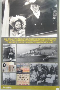 De nombreuses photographies, images et documents d'archives y sont exposés;provenant de particuliers, du centre d'étude de l'émigration de Rome et importés directement pour l'occasion du musée et de la librairie publique de la ville de New York. L'exposition se décline en 3 parties :Partir, Arriver et vivre en Amérique.