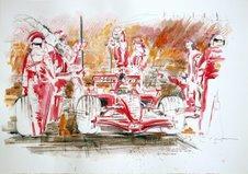 Avec ses 2 expositions "Motor-Sport(s) art and more ..." qui donc se tiendront à l'AJM et à la Galerie du Gildo Pastor pendant la période du 6ème Grand Prix Historique et du 65ème Grand Prix F1 de Monaco, Horst Brozy démontrera que les sports automobiles peuvent être également de l'art et même davantage. Son travail est déjà très apprécié par de nombreuses écuries automobiles qui aiment beaucoup son style et qui lui ont donc, tout naturellement, passé commande de dessins et de peintures. Son approche du sport, son rendu dramatique et dynamique des scènes sportives touchent parfaitement avec l'art car l'artiste souhaite avant tout, que son travail soit parlant à tout le monde.Il reste fidèle ainsi à l'école du Bauhaus qui ne distingue pas de frontière entre art et design et qui désire rendre accessible les ?uvres, le plus largement possible. Jour après jour, toiles après toiles Horst Brozy travaille dans ce sens. C'est toujours animé par cet esprit qu'il a crée le design d'équipes cyclistes telles que Team Coast, Olympia Dortmund, Team Cologne ...