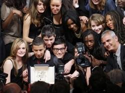 Les adolescents et Laurent Cantet en compagnie de la Palme d'or (photo AFP)