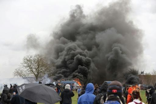 À l'approche du site, aux allures de bastion médiéval avec son talus entouré par les forces de l'ordre, de violents affrontements se sont produits durant une heure, transformant l'endroit en scène de guerre, avec de fortes détonations et des véhicules en feu.