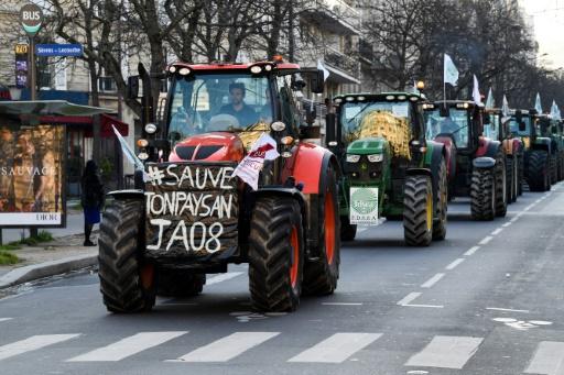 "On nous dit +démerdez-vous+": juchés sur leurs tracteurs, plus d'un millier d'agriculteurs ont défilé mercredi à Paris contre la "décroissance agricole" induite selon eux par l'interdiction de pesticides qu'ils jugent indispensables à leur activité.