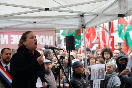 "Dans quelle démocratie les méthodes de l'antiterrorisme sont-elles utilisées contre des militants politiques, des militants associatifs ou des syndicalistes?", a lancé Mathilde Panot devant ses partisans qui scandaient "Résistance" et agitaient des drapeaux palestiniens, insoumis ou sud-africains.