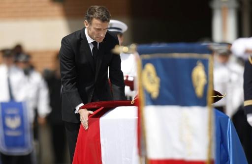 Devant les trois cercueils amenés dans un roulement de tambours funèbre, Emmanuel Macron a demandé "respect et considération" pour ceux qui servent et protègent" et pointé les "comportements irresponsables qui tuent".
