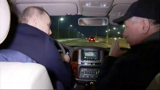 Lors de ce déplacement surprise dans la nuit de samedi à dimanche, le président russe, arrivé en hélicoptère, a fait un tour de la ville au volant d'une voiture, a précisé le Kremlin.