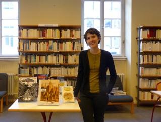 Un sourire non virtuel mais bien réel : Anne-Sophie Gabillas dans la médiathèque de Mayence dont elle est responsable