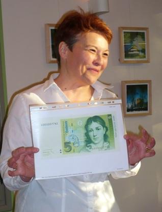 Une femme fascinée et une femme fascinante : Patricia Bigdely devant un portrait de Bettina von Arnim à la PetriHaus